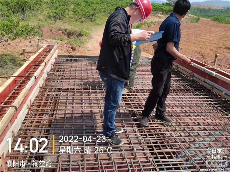 杉树林水库监理对机耕桥进行钢筋验收